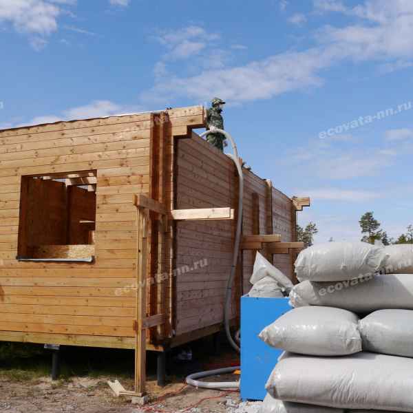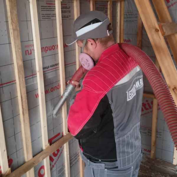 В удобный для вас день мы завозим эковату, установку и начинаем работы.