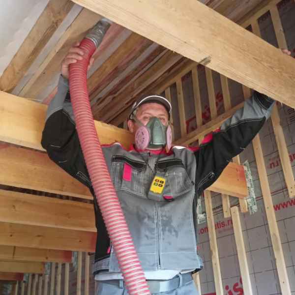 В интернете можно найти очень много "умных" людей, советующих экономить на услугах профессионалов и задувать эковату самодельными устройствами типа садовых воздуходувок. Такие устройства не могут ни качественно вспушить эковату, ни дать необходимой плотности. Им просто не хватает мощности воздуходувки и ворошителей.